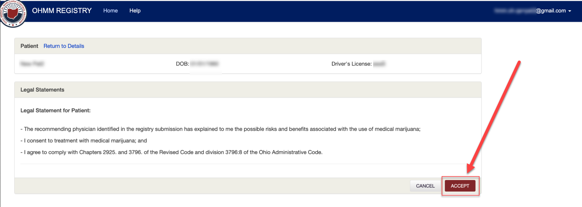 - To begin this process ensure that you are logged into https://www.ohiomedicalmarijuanaregistry.com/.